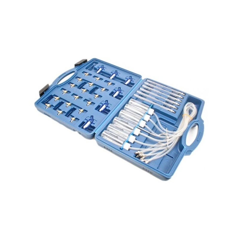 De ASTA A‑KB0101 is een hoogwaardige meet set ontworpen voor het meten van retourdebiet van brandstof bij injectorventielen in Common Rail dieselmotoren (tot 6 cilindervoertuigen). Met deze set kun je snel en nauwkeurig bepalen of injectoren te veel brandstof teruggeven — een cruciale diagnose voor injectieverstoring en test van inspuitsysteem.