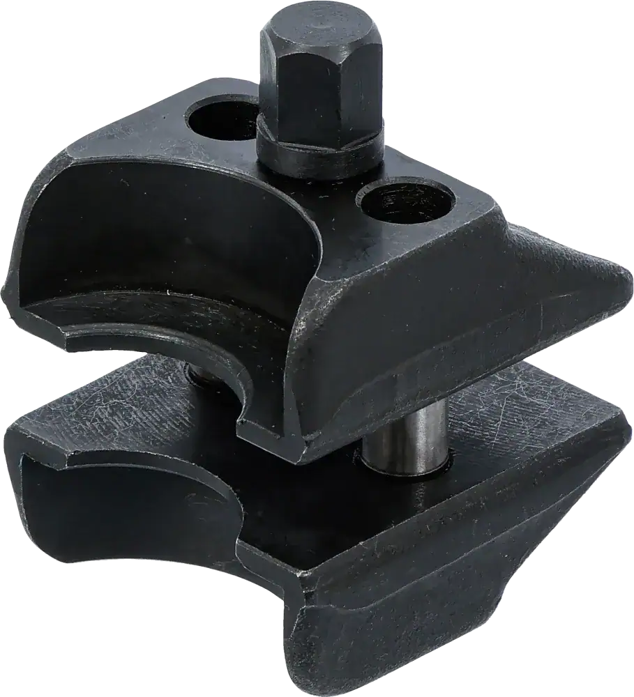 Dit gereedschap gebruik je voor het schadevrij monteren en demonteren van veerpoten waarbij de naaf nog gemonteerd is. Met deze spreider druk je de klembevestiging van het fuseestuk gecontroleerd open, zodat de veerpoot gemakkelijk kan worden verwijderd of geplaatst. Door dit hulpmiddel te gebruiken, voorkom je dat je met een beitel of hamer de behuizing van de fuseekogel of het fuseestuk zelf beschadigt.