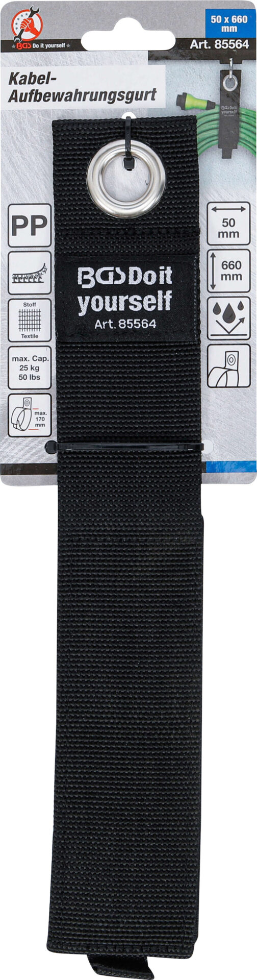 Verstelbare kabelbinder voor het veilig bundelen en overzichtelijk opbergen van kabels, slangen, touwen en meer. Ideaal voor gebruik in kelder, werkplaats, garage of camper. Gemaakt van heavy-duty klittenbandmateriaal, voorzien van corrosiebestendige oogjes en dubbele stiknaden voor een lange levensduur.