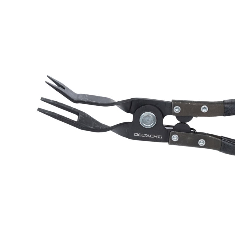 De tang heeft fijn afgewerkte bekken die perfect onder bekledingsclips grijpen om ze gecontroleerd los te wrikken. Het hefboommechanisme vermindert de benodigde kracht, terwijl de comfortabele handgrepen zorgen voor optimale grip en nauwkeurige bediening tijdens het werken.