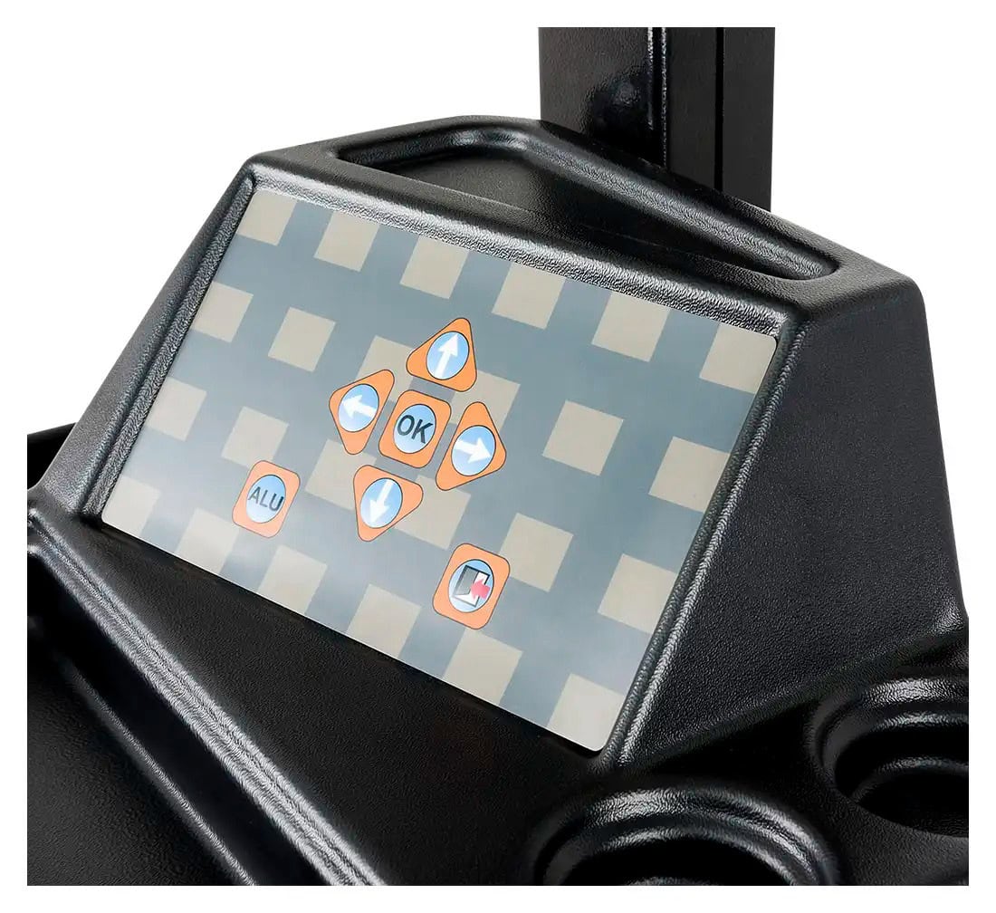 Het 17” LCD-scherm toont alle gegevens duidelijk en overzichtelijk, terwijl de elektromechanische rem het wiel automatisch positioneert bij het onbalanspunt – ideaal voor snel en foutloos werken.