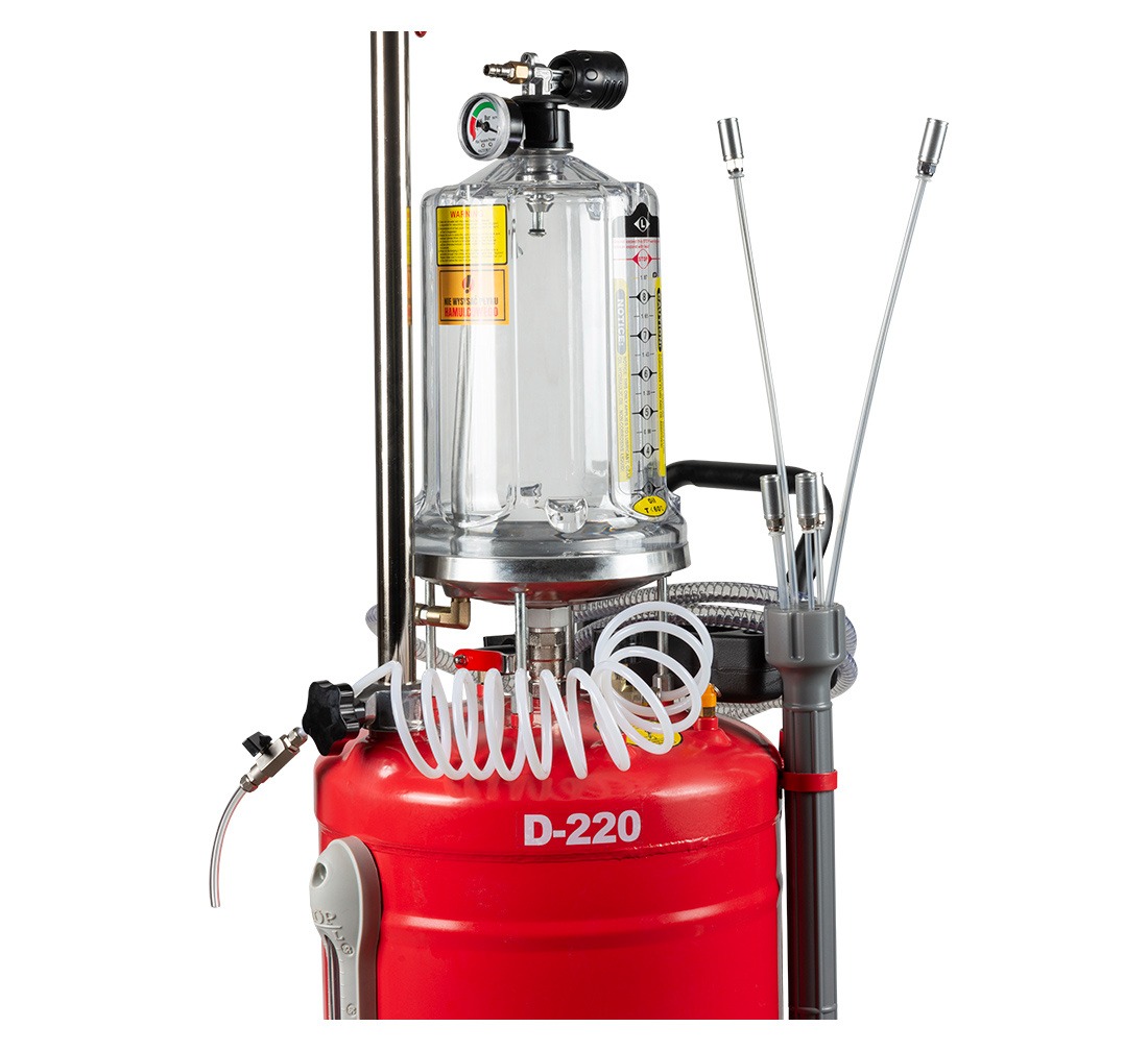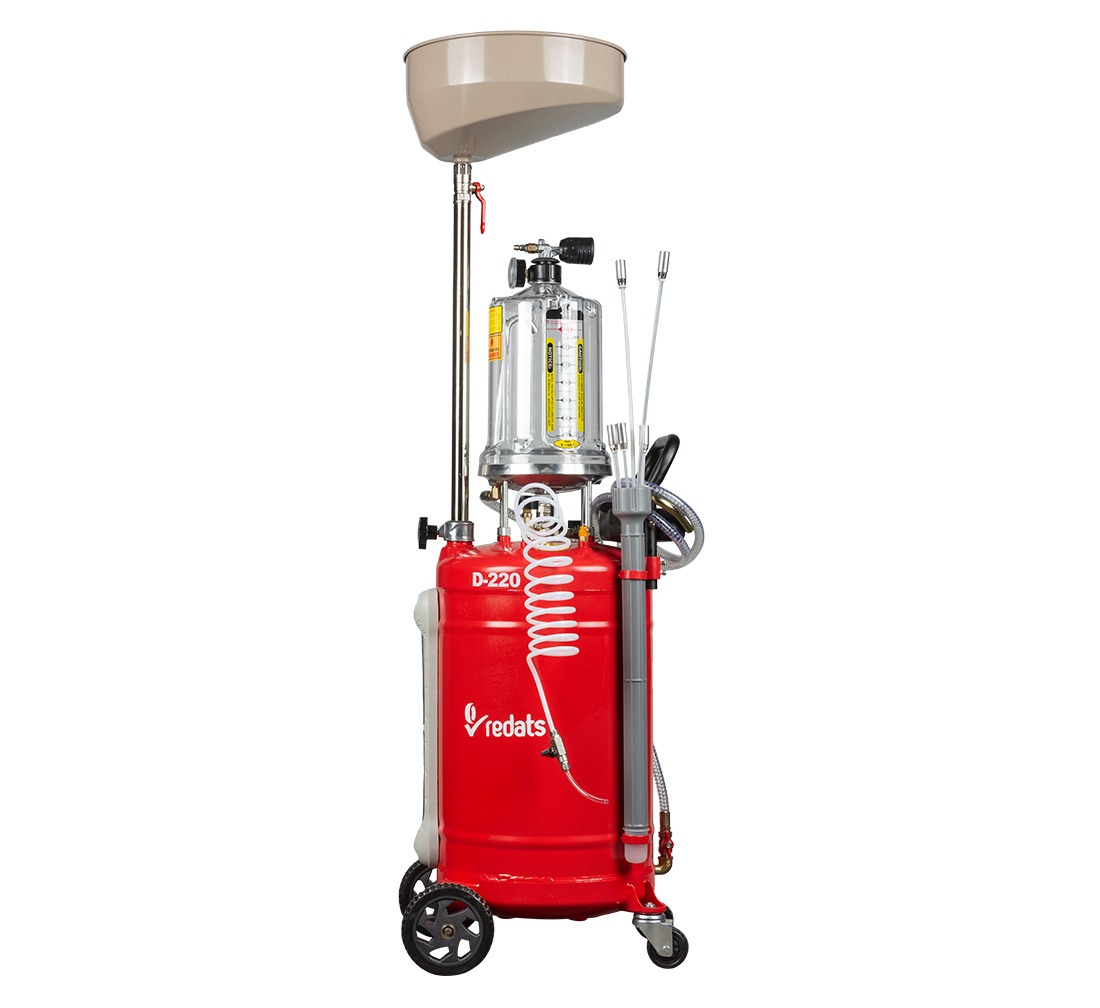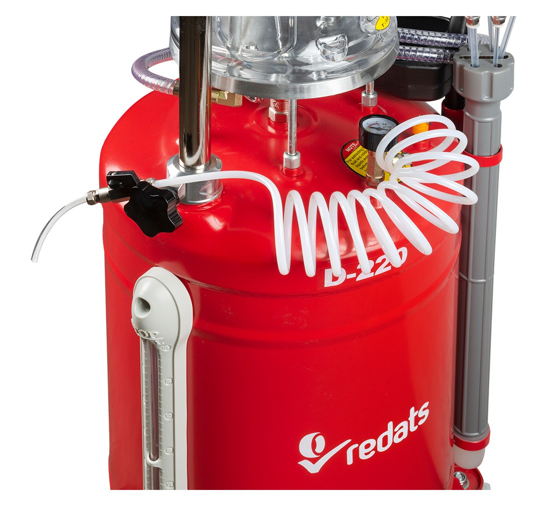 De REDATS D-220 is een gecombineerde olieafzuiger en -aflater, ontworpen voor het snel en efficiënt verwijderen van motor- of transmissieolie. Dankzij de pneumatische werking kan olie zowel uit het carter als uit leidingen en andere delen van het motorsysteem worden verwijderd.