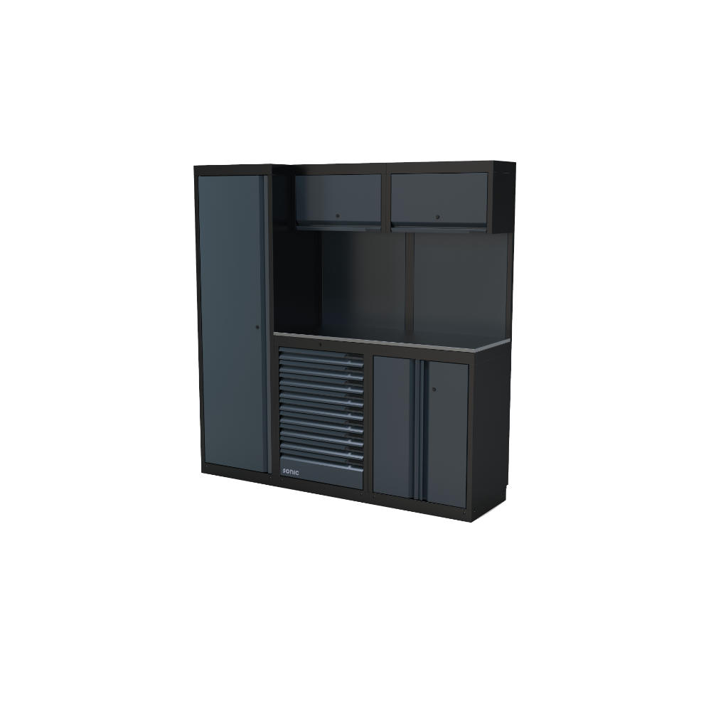 Home » Gereedschap opbergen » Werkplaatsopstellingen Sonic » SONIC NEXT MSS Werkplaatsopstellingen » SONIC 4930709 NEXT MSS opstelling rvs werkblad hoog 1958mm