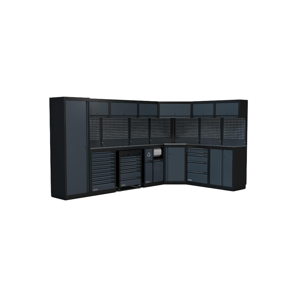 NEXT MSS combineert een strak, modern design met uitzonderlijke functionaliteit en biedt een professionele uitstraling voor elke werkplaats. Dankzij de robuuste, gepoedercoate staalconstructie is het systeem bestand tegen intensief dagelijks gebruik.