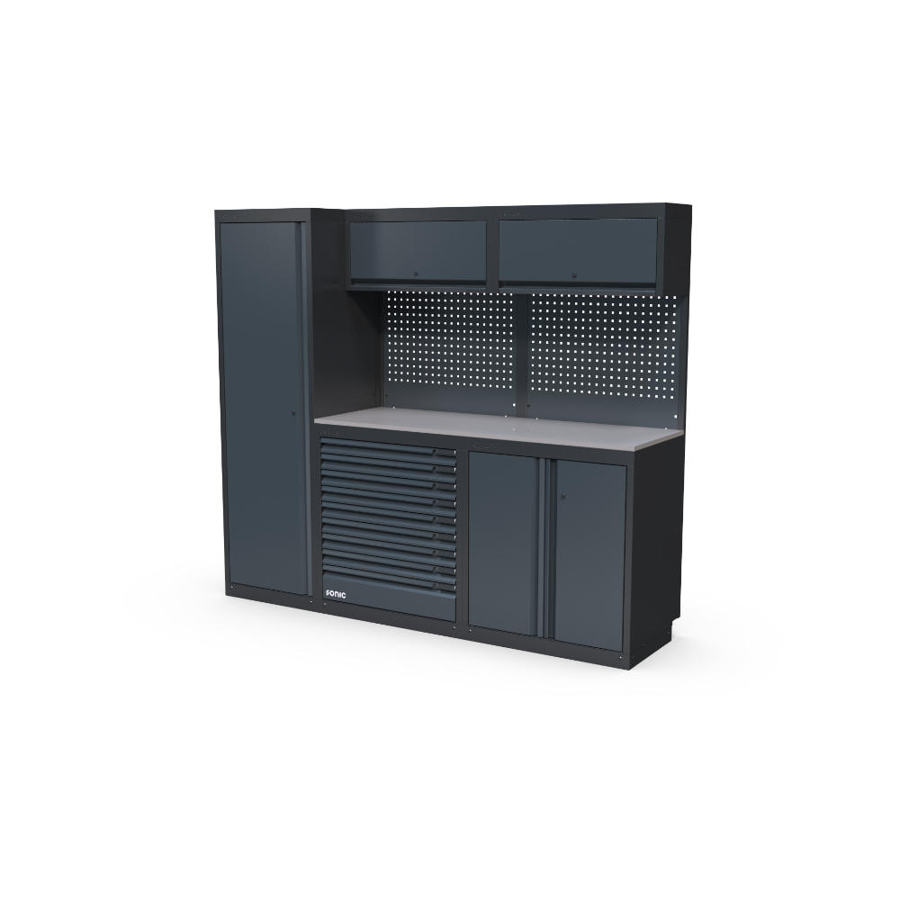 Home » Gereedschap opbergen » Werkplaatsopstellingen Sonic » SONIC NEXT MSS Werkplaatsopstellingen » SONIC 4931102 NEXT MSS opstelling rvs extra diep werkblad hoog 2300mm