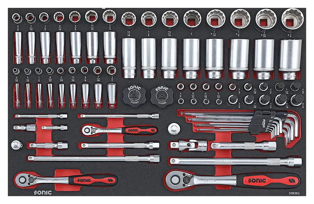 - Combinatieset 1/4″, 3/8″ en 1/2″ SFS-M SAE (93-delig): Productnummer 309303