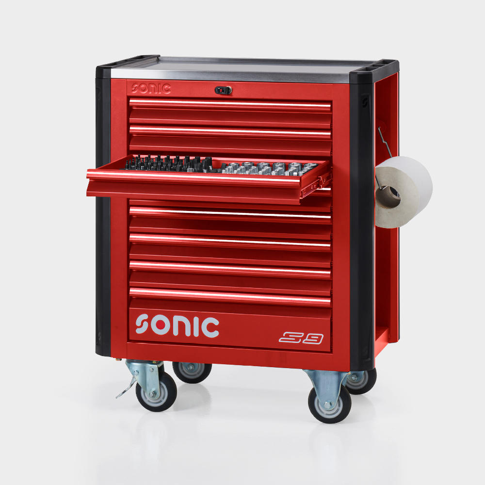De Sonic NEXT S9 is de aanbevolen oplossing voor technici die op zoek zijn naar een basic tot intermediate gereedschapsset. Wat deze gereedschapswagen tot een bestseller maakt, is het ruimtebesparende ontwerp in combinatie met een grote opbergruimte.