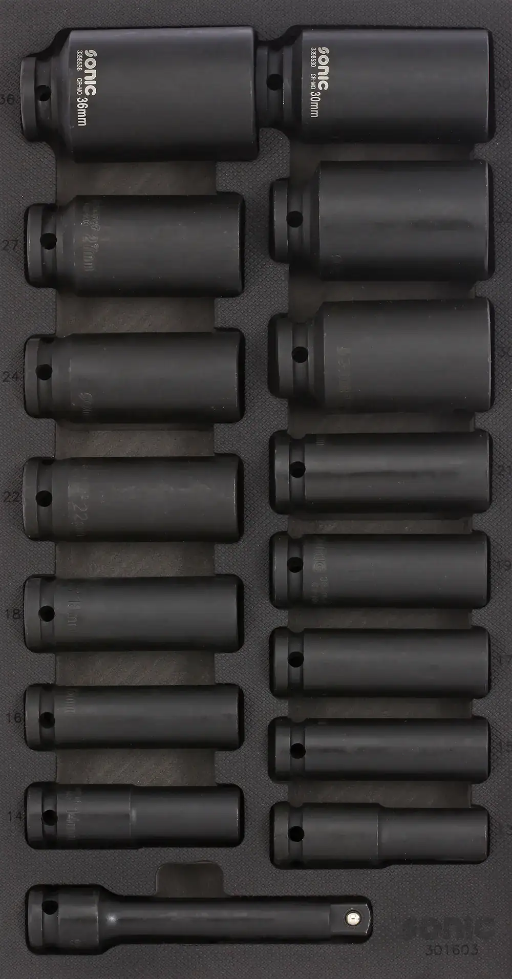 - Krachtdoppenset lang 1/2″ SFS-S (16-delig): Productnummer 301603