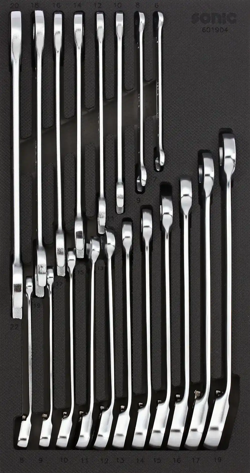 - Ratelring en dubbele steeksleutelset SFS-S (19-delig): Productnummer 601904