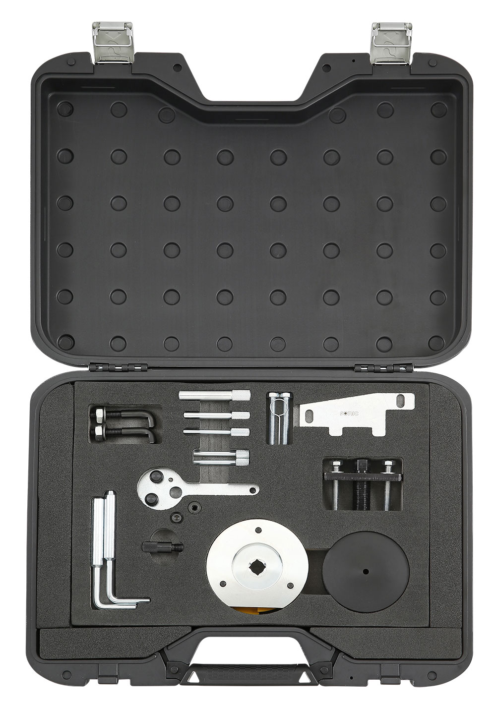 Deze set bestaat uit 18 items voor het afstellen/blokkeren van de essentiële onderdelen, bij het vervangen van de distributieketting en bijbehorende onderdelen.