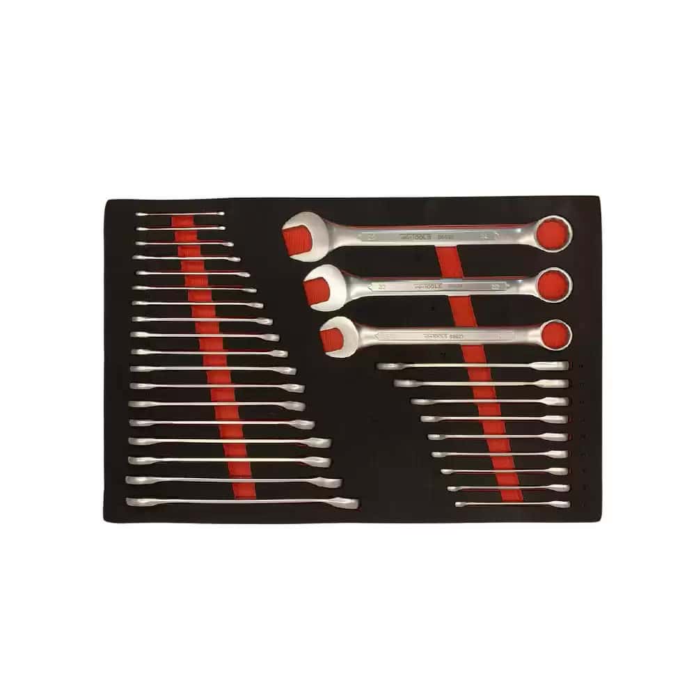 - Combinatiesleutels: 6 – 7 – 8 – 9 – 10 – 11 – 12 – 13 – 14 – 15 – 16 – 17 – 18 – 19 – 20 – 21 – 22 – 24 – 27 – 30 – 32 mm